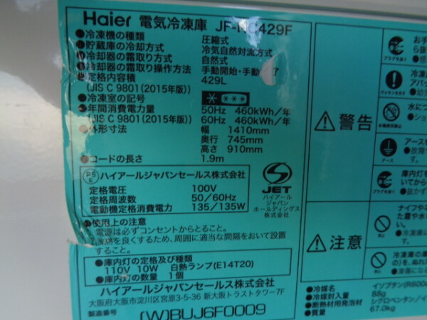 【売約済み】■2018年ハイアール ◆429Lフリーザー/冷凍庫/冷凍ストッカー◆JF-NC429F■fr202