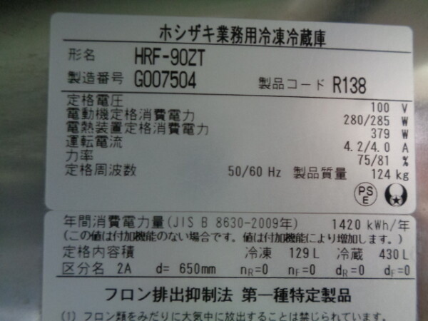 【売約済み】■ホシザキ 縦型冷凍冷蔵庫【1凍2蔵】 900×650 100V◆HRF-90ZT■ta201