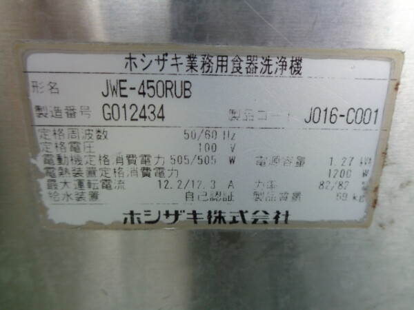 ■ ホシザキ 業務用食器洗浄機 小型ドアタイプ 単相100V ◆ JWE-450RUB ■dw428