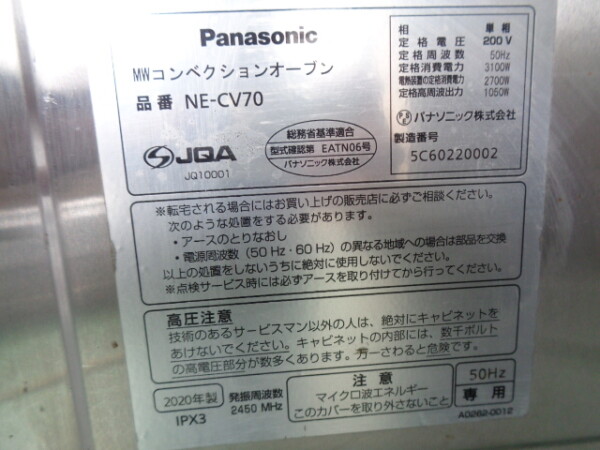 ■ 2020年 パナソニック マイクロウェーブコンベクションオーブン ◆ NE-CV70 ■ov106