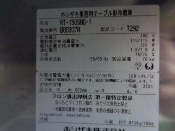 ■ 2022年 ホシザキ ◆ 冷蔵コールドテーブル 1500×600 ◆ RT-150SNG-1 ■co287